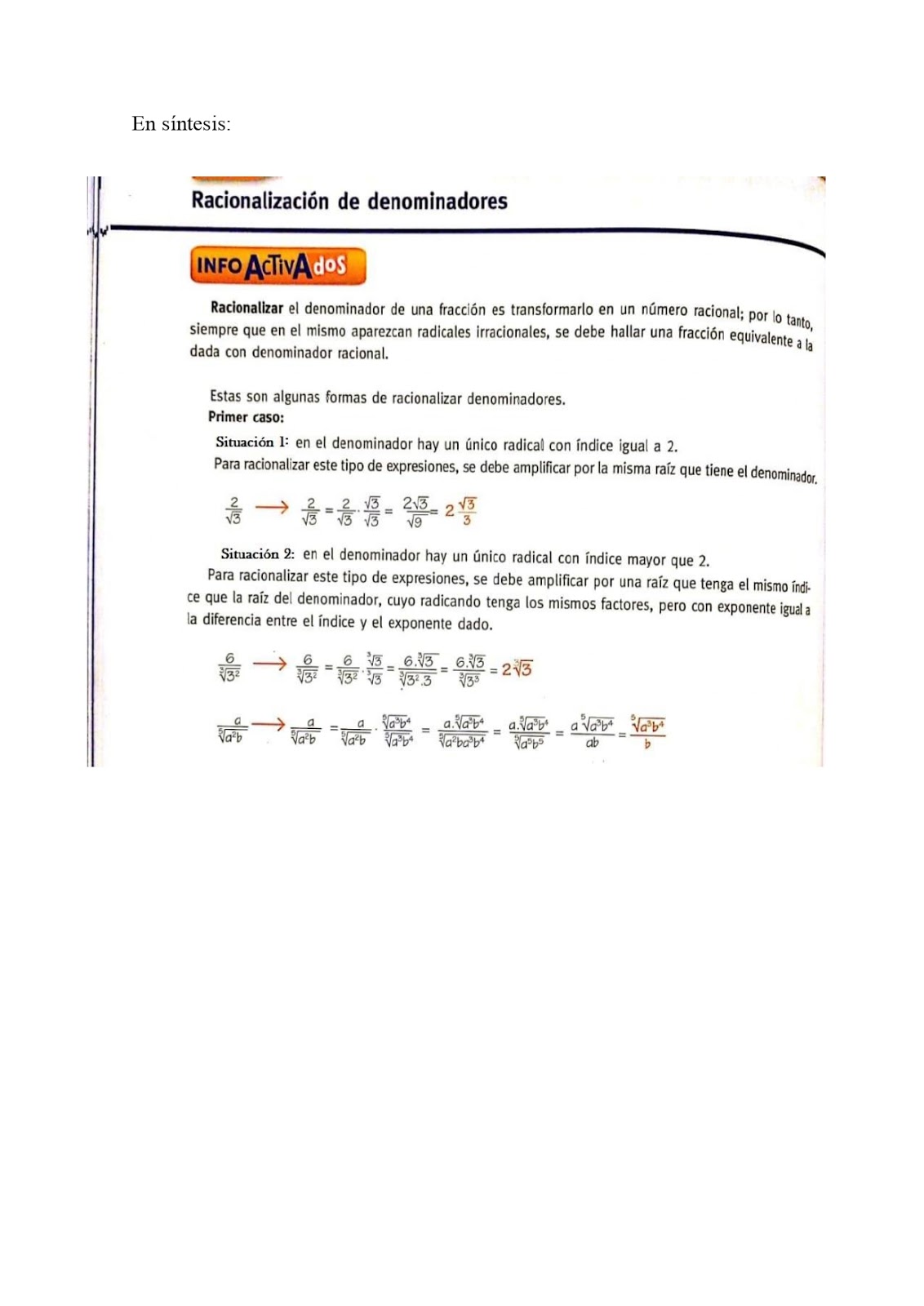Hola chicos buenas tardes, tal cual acordamos dejo la actividad nº5 referida al primer caso de Racionalización de denominadores. Ya les cargué el video explicativo y el archivo de la clase de hoy en nuestro Classroom.